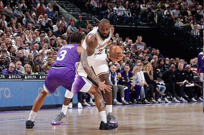 东契奇33+11+8湖人拒绝逆转险胜爵士4连胜,勒布朗17+6+8